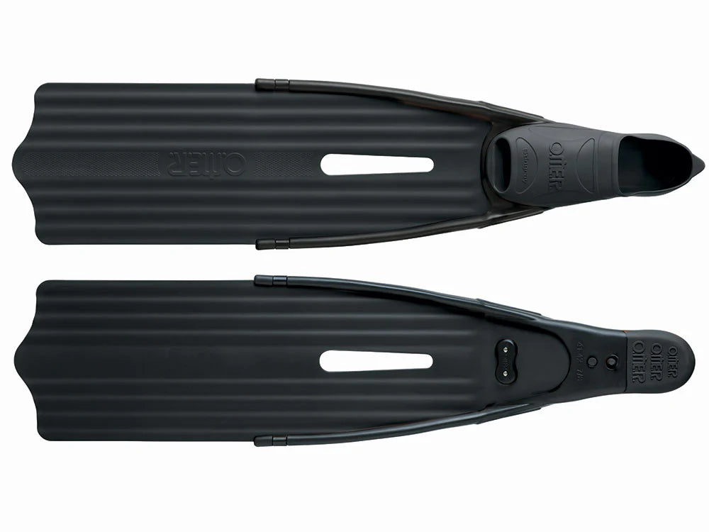 Long fins for freediving and spearfishing. 22-degree downturned blade. The keyhole improves its performance by channeling water and guiding the blade during movement. In addition, the hole also serves to decrease the force needed to move the fin in the less active area of the blade.