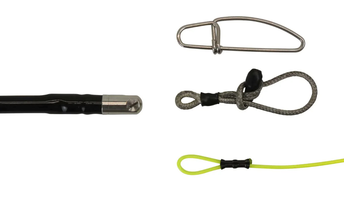 A superior connection we have developed as an alternative to traditional connections. It is incredibly strong, stealthy, and simple. With a breaking strength of 1800 pounds, it far surpasses the holding capabilities of any other connection. By doing away with shackles and clips we have created an extremely quiet connection as well, there is no metal to clank around on your gun anymore, and the result is stealthy. It is also a simple elegant design easy to tie and untie in challenging conditions.